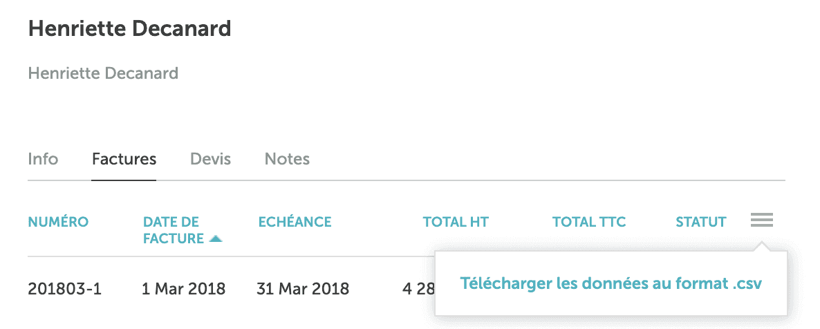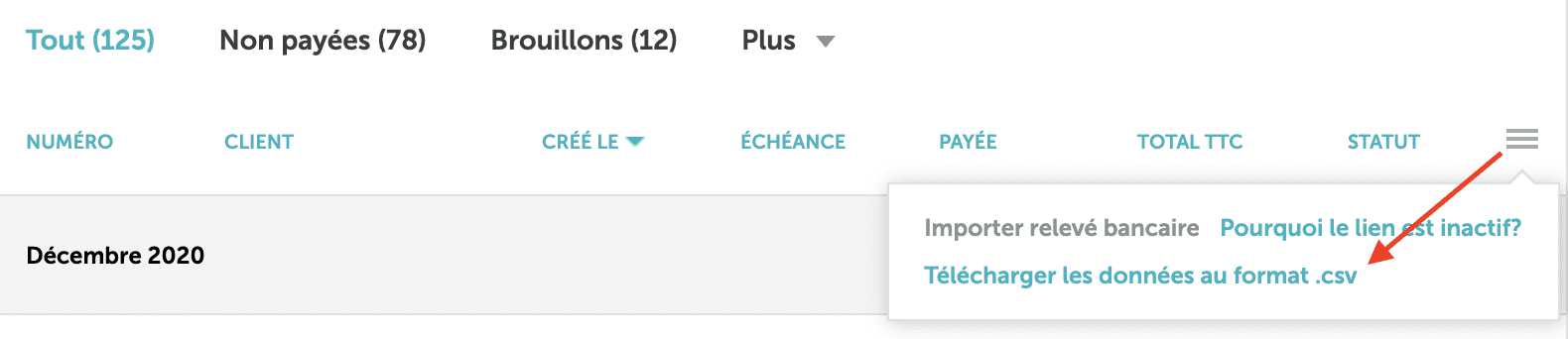 3. Cliquez sur les trois lignes grises dans le coin droit de votre liste de factures.