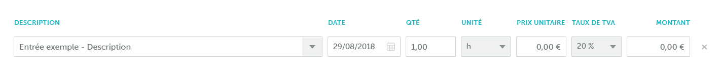 Les quatre premiers champs sont obligatoires pour enregistrer l'entrée. La description est optionnelle et vous pouvez ajouter des informations sur la facture avant de l'approuver.